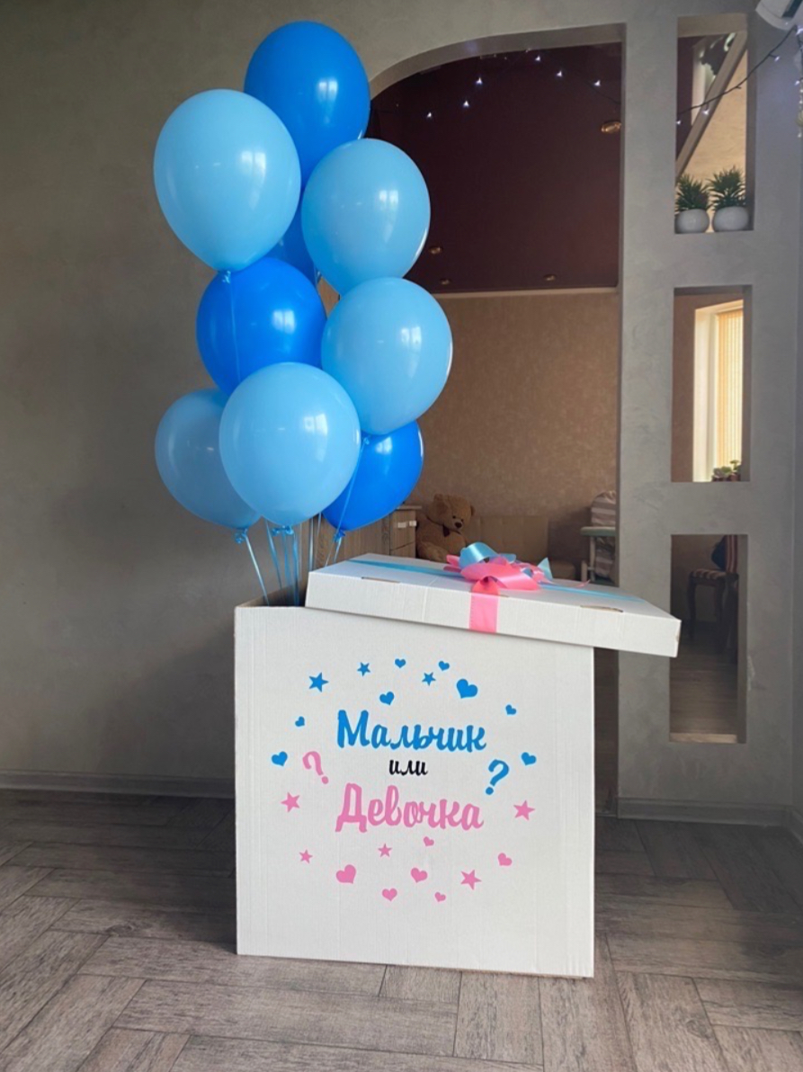 В композицию входит : Коробка с вашей надписью + фонтан ( 9 шаров постель ) 1 грузик