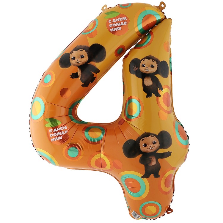 Фольгированная цифра 4 Чебурашка