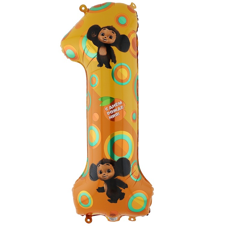 Фольгированная цифра 1 Чебурашка