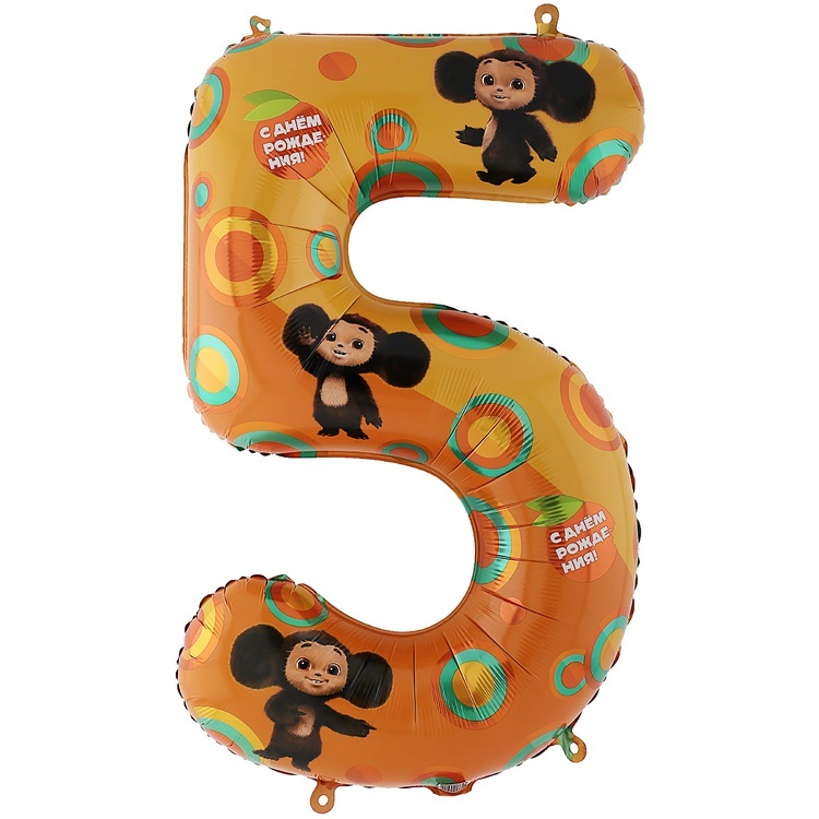 Фольгированная цифра 5 Чебурашка