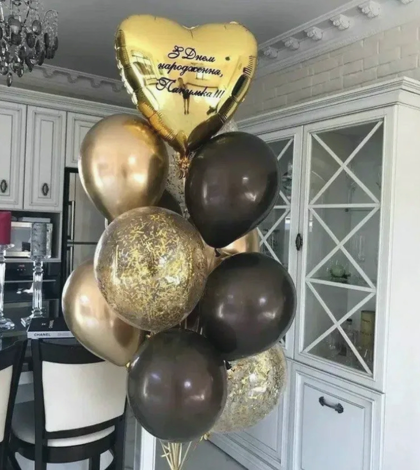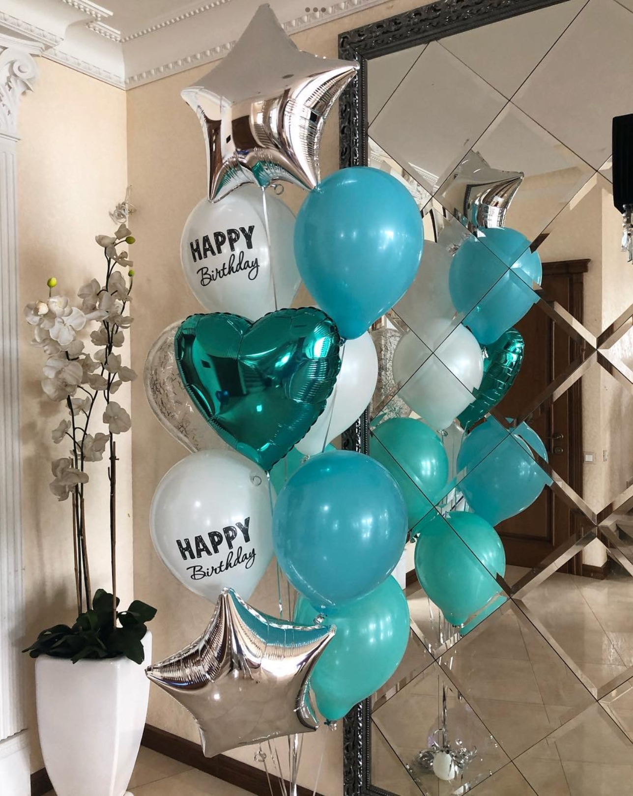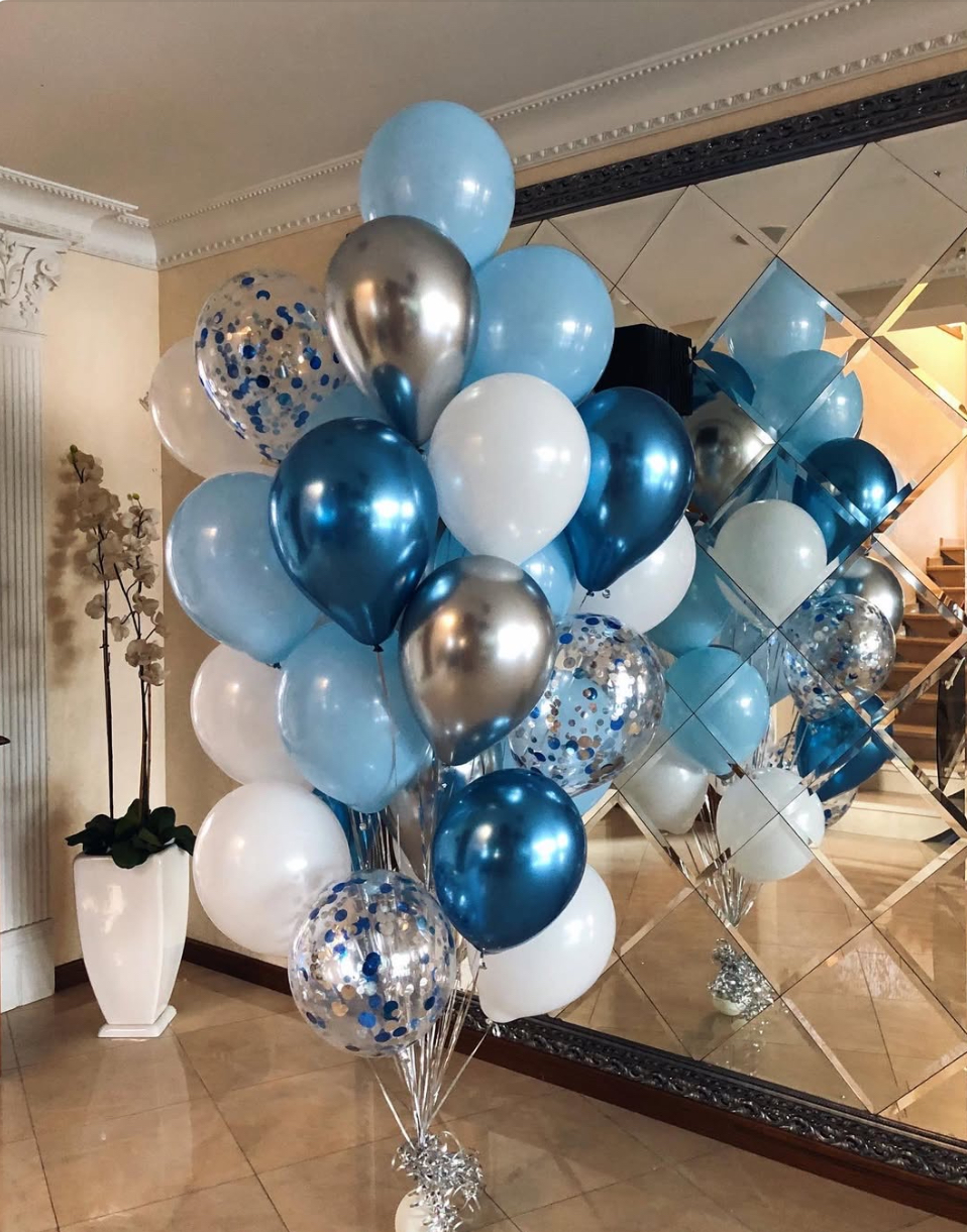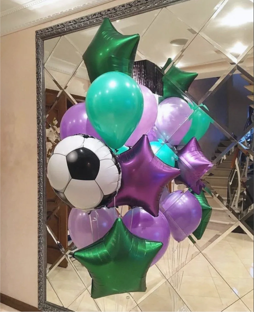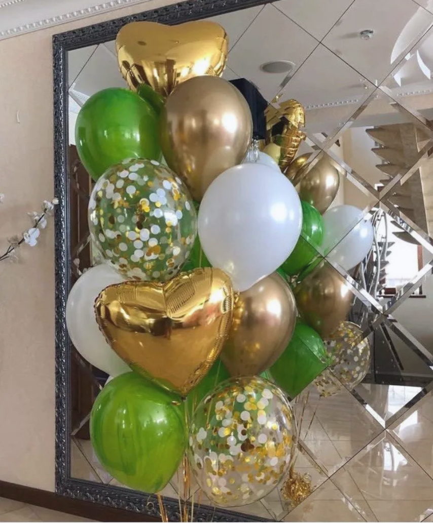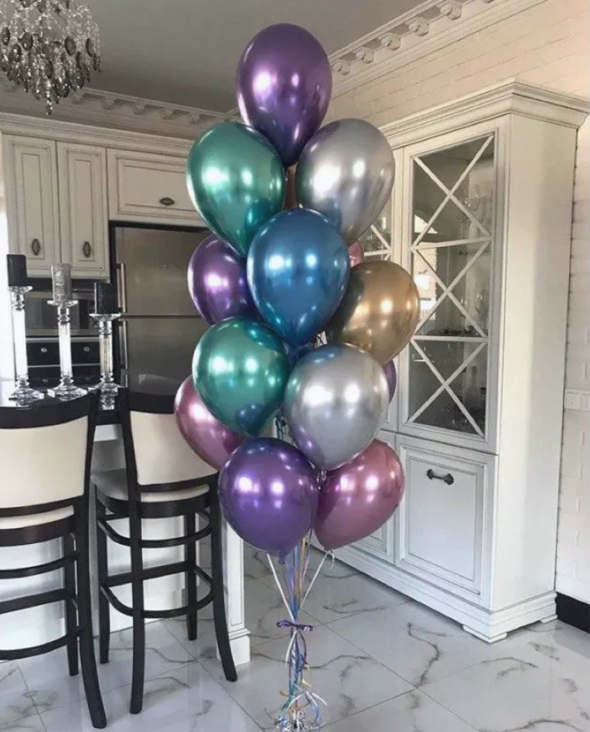 В фонтан входит : 2 фольгированные звёзды 2 фольгированных сердца 3 шара с днём рождения 3 шара Агат 6 шаров хром 1 грузик