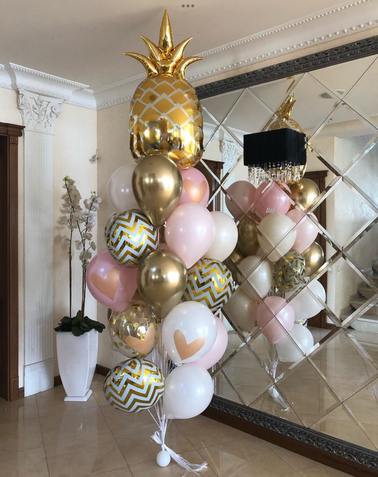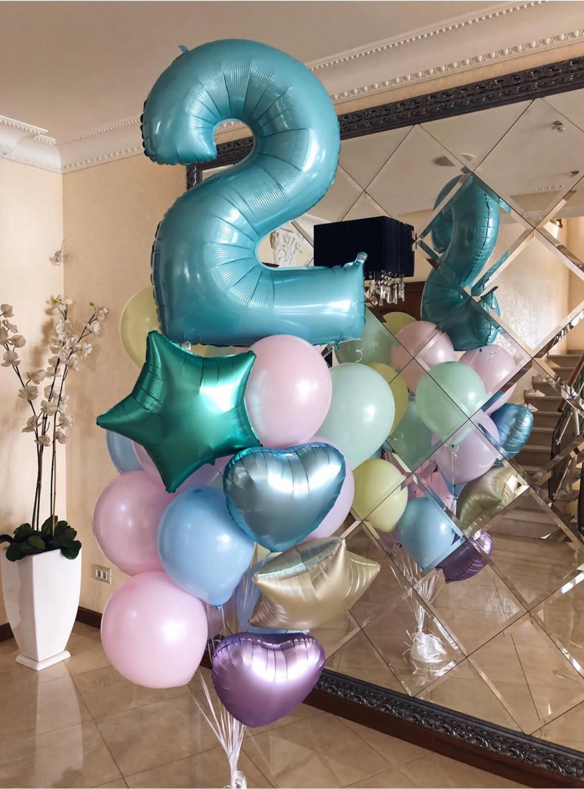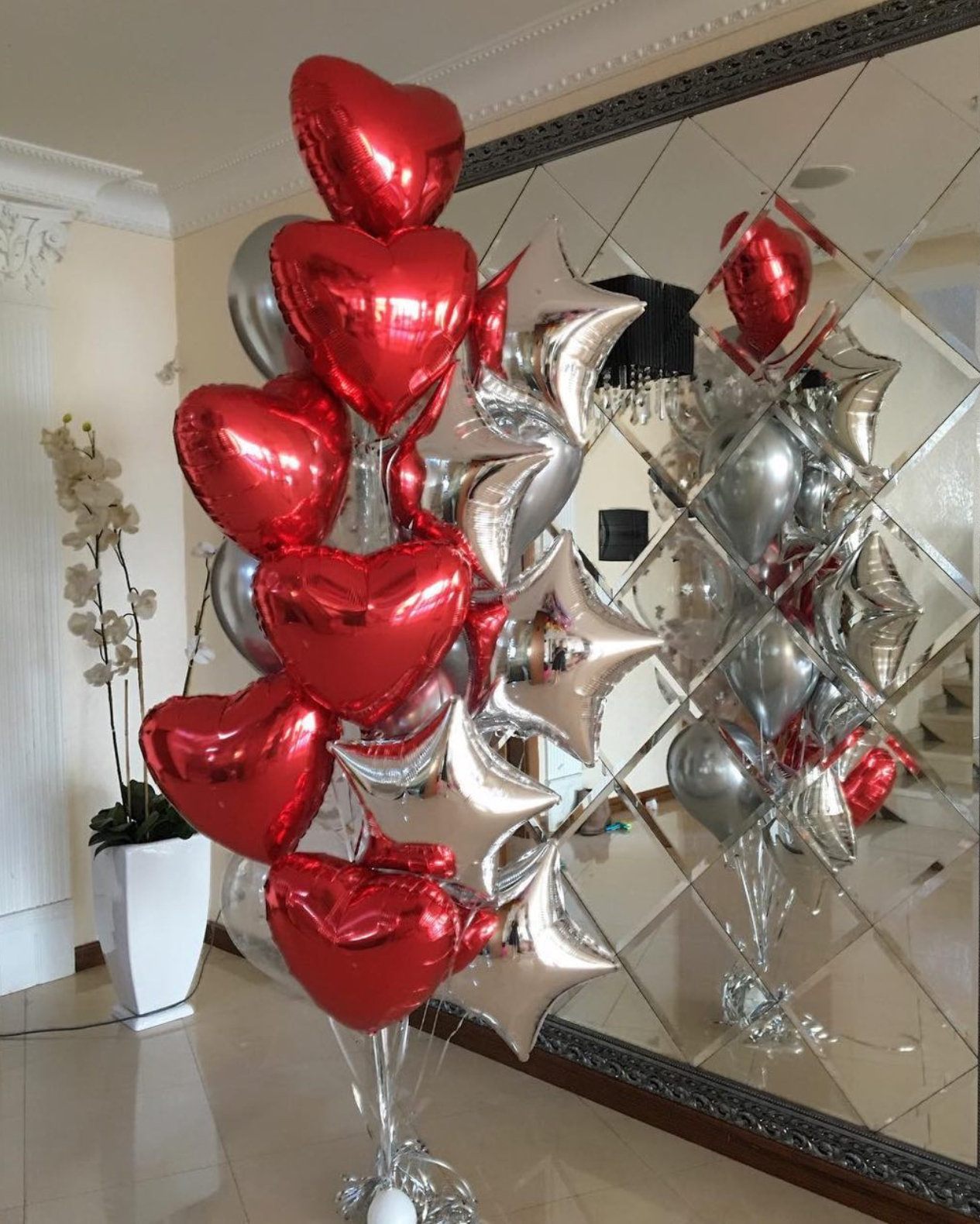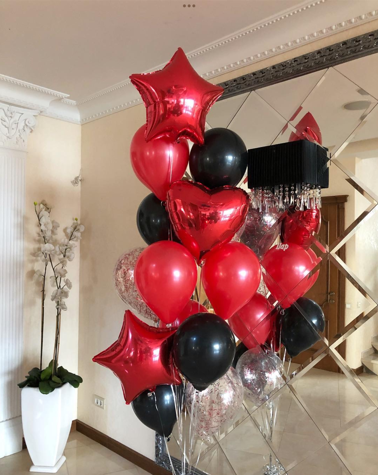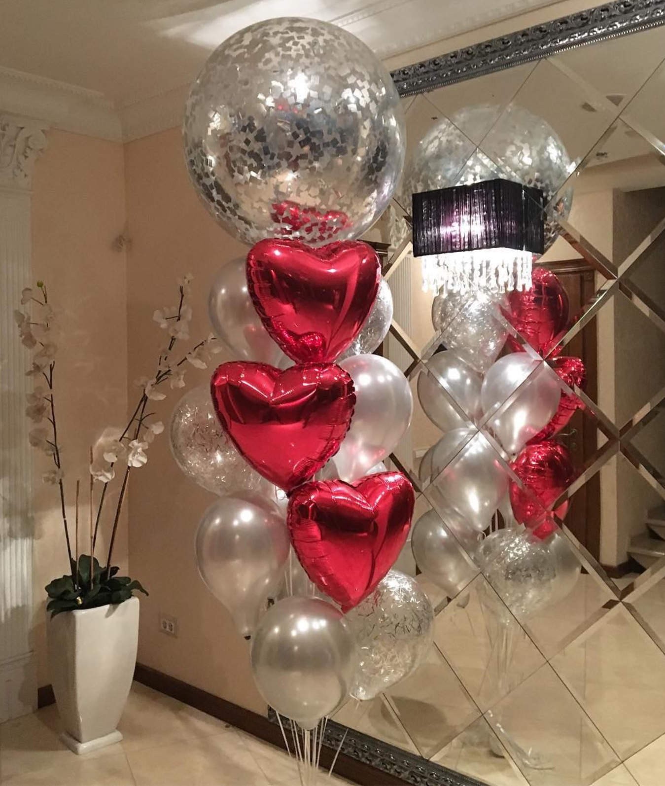 В фонтан входит : 2 фольгированные звёзды 2 фольгированных сердца 3 шара с днём рождения 3 шара Агат 6 шаров хром 1 грузик
