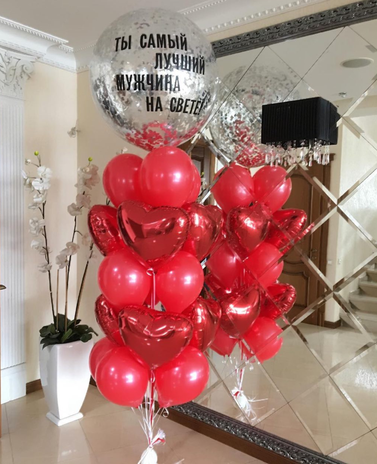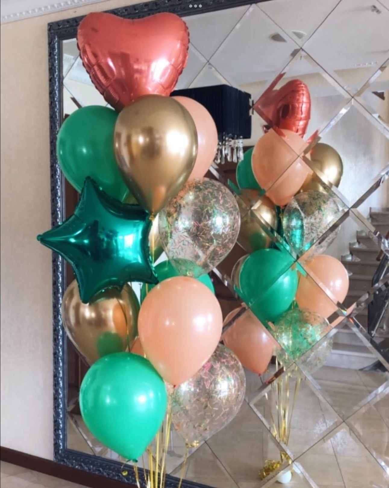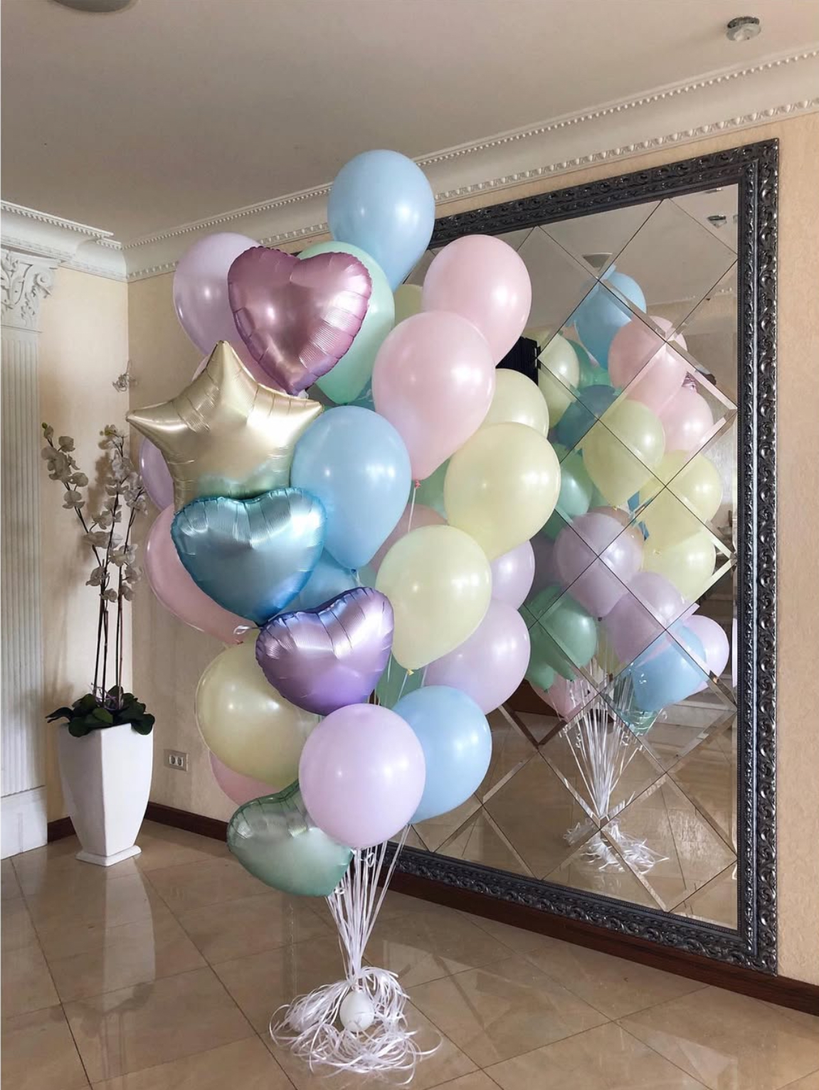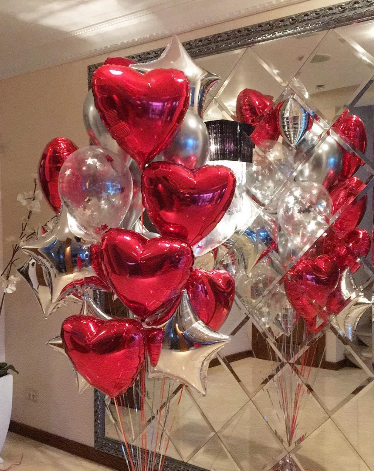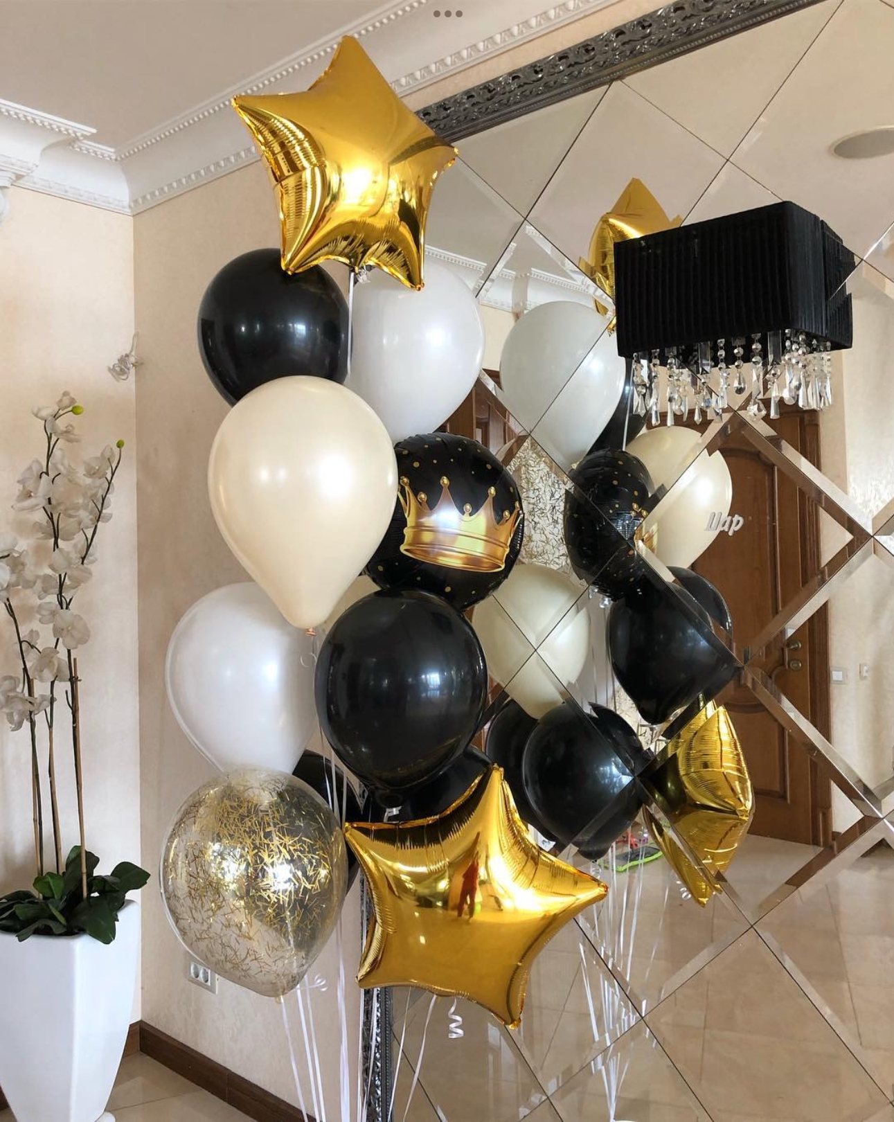В фонтан входит : 2 фольгированные звёзды 2 фольгированных сердца 3 шара с днём рождения 3 шара Агат 6 шаров хром 1 грузик
