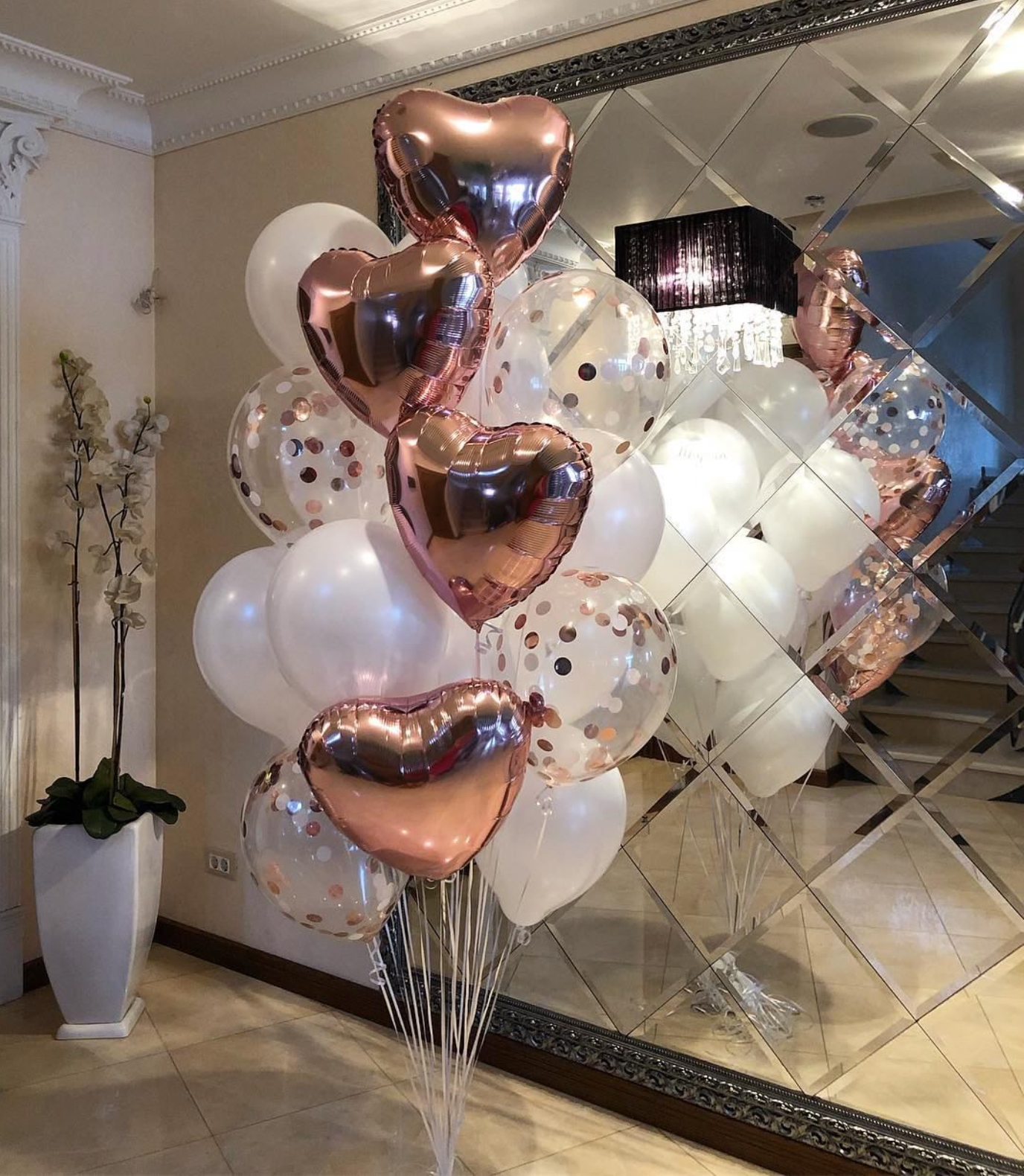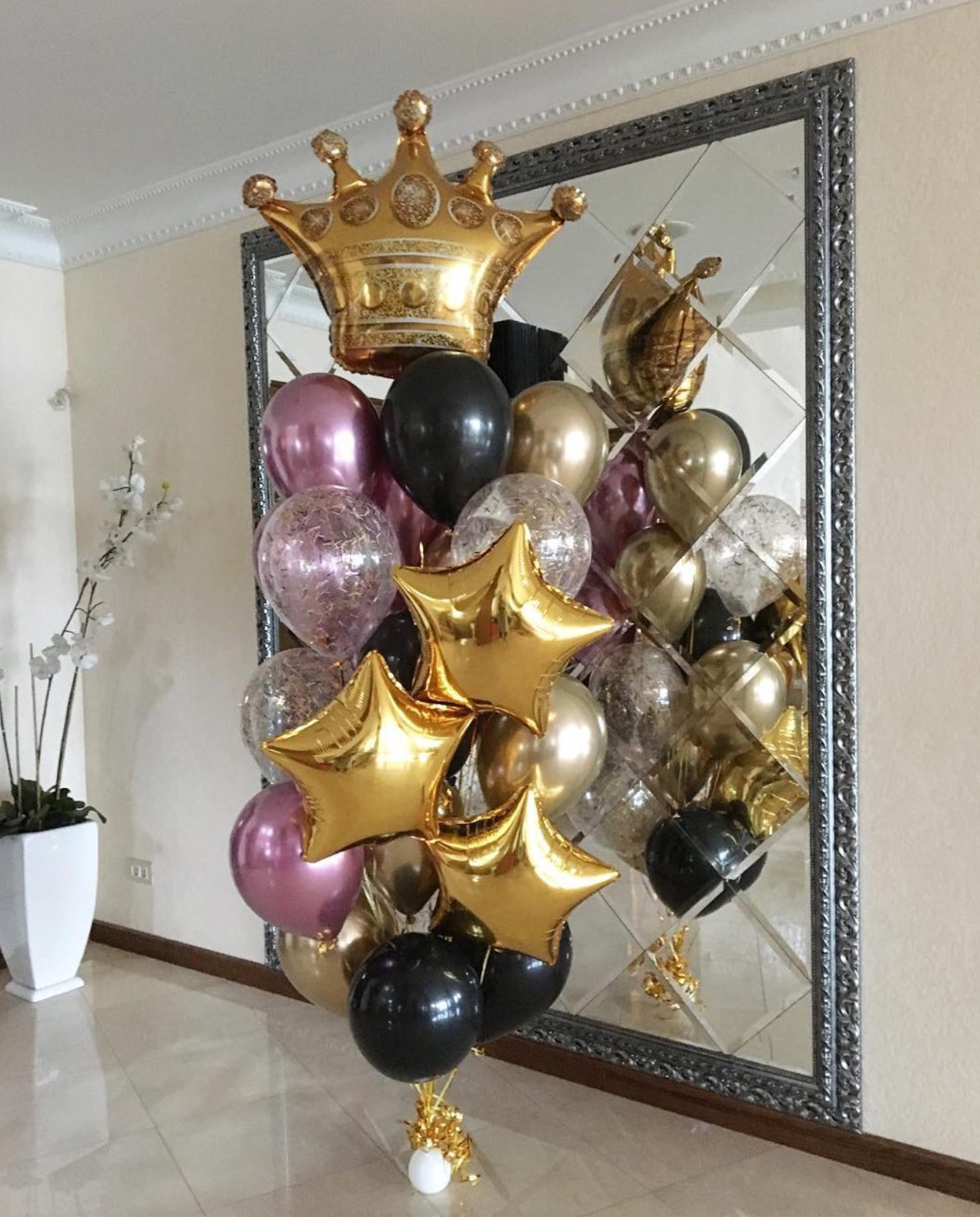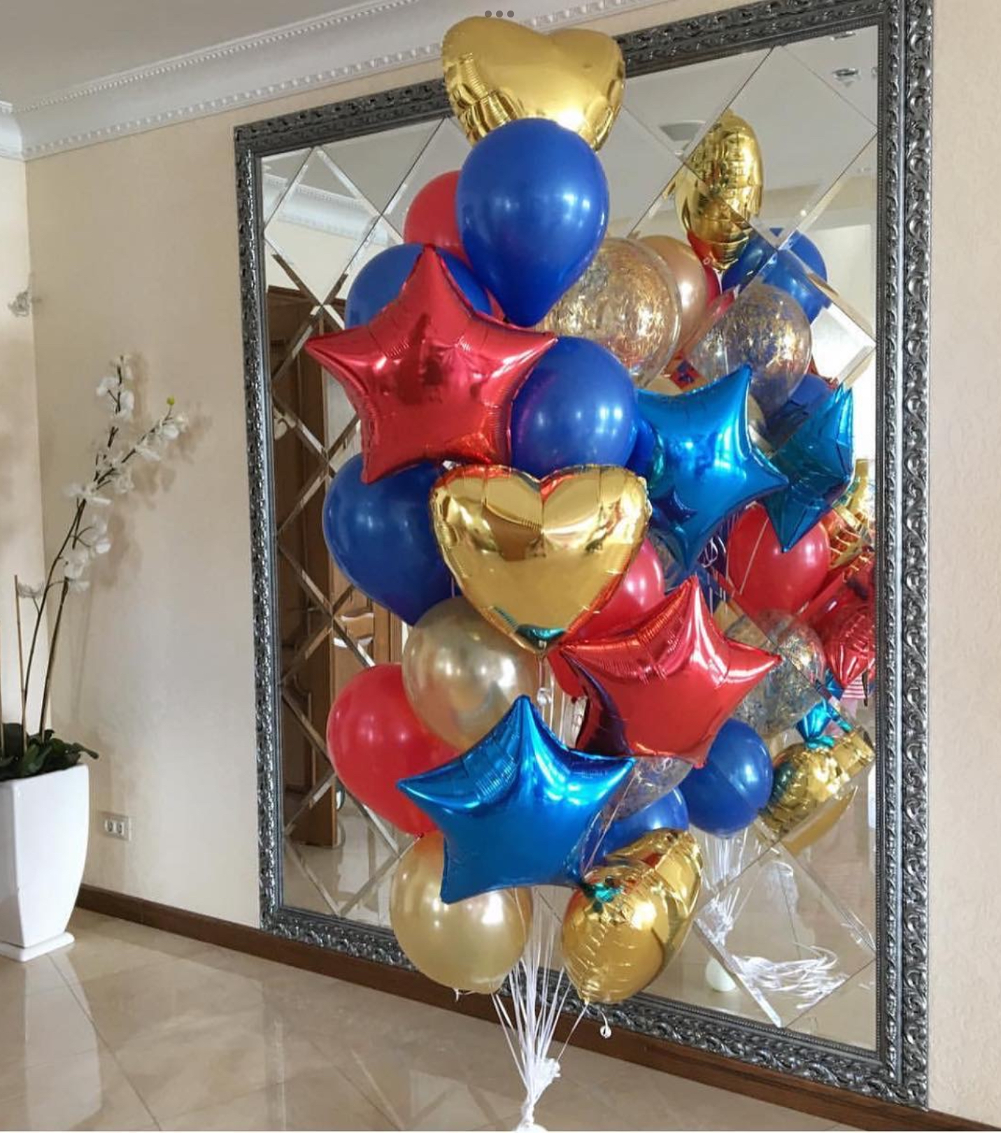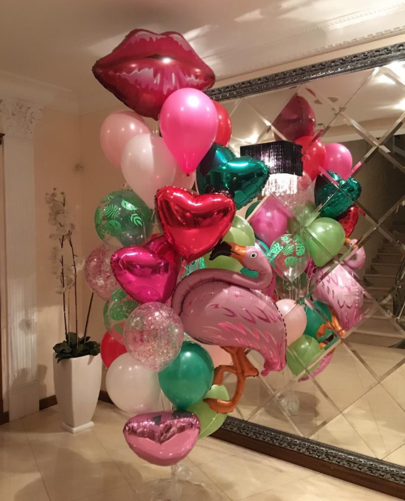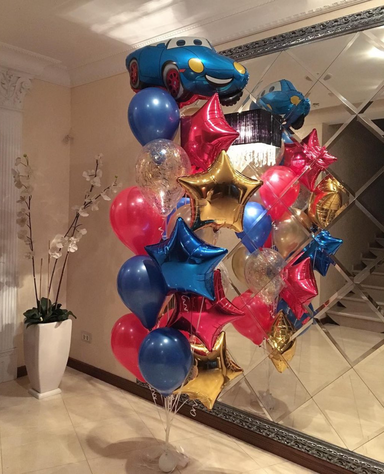 В фонтан входит : 2 фольгированные звёзды 2 фольгированных сердца 3 шара с днём рождения 3 шара Агат 6 шаров хром 1 грузик